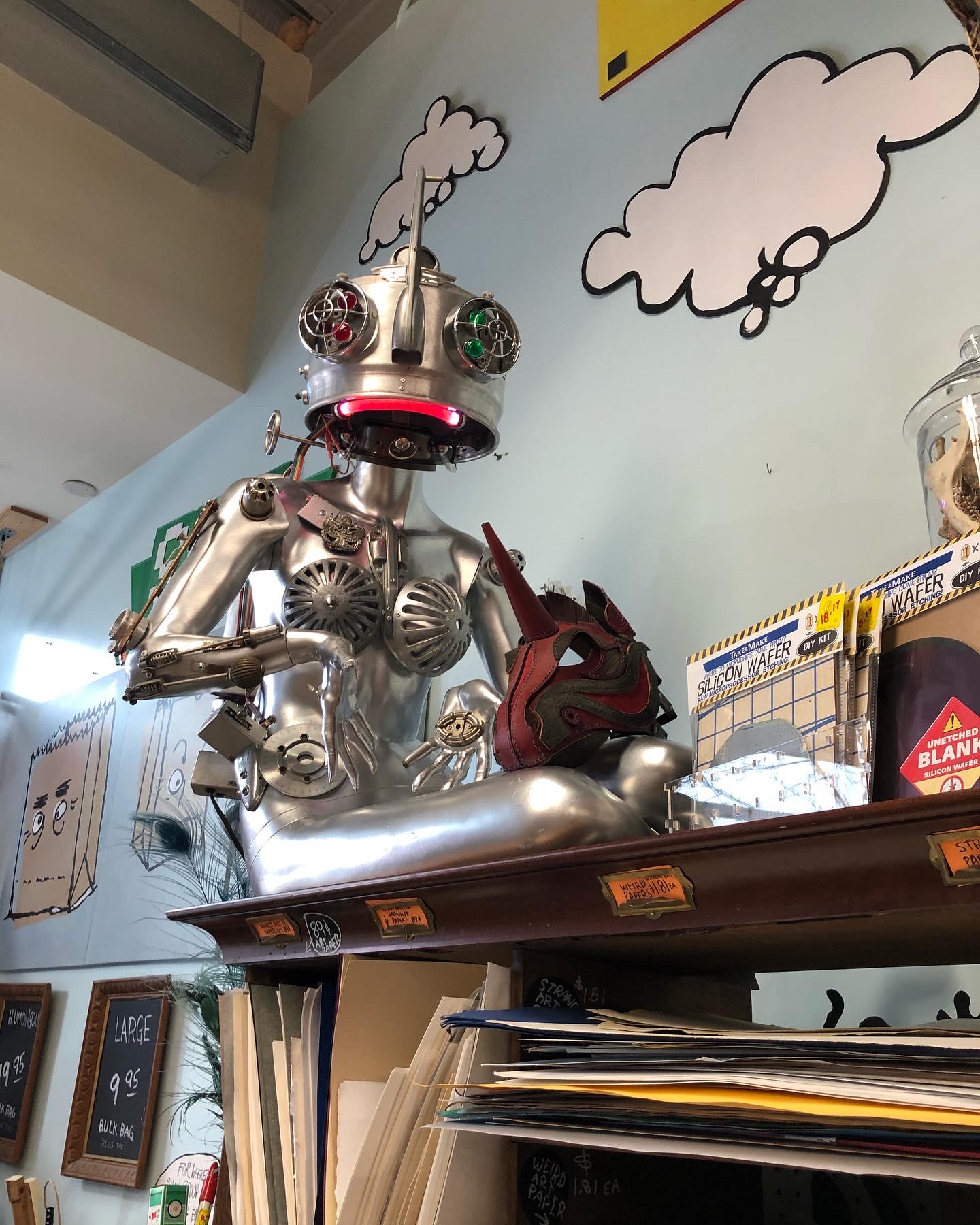 No, Mine! Studios Interns Jillian Schmitt and Sterling Kelly helped assemble 40 Animation Kits that will be given away to participants for free on a first come, first served basis. We’re also planning to expand the resources available for the stop motion station, so last week I trekked out to TinkerTopia to get some ideas. I highly recommend supporting this local business if you’re looking for additional stop motion set building supplies and figurines to use for animation.